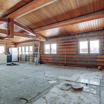 Ranch log home waterfront location on Knik River, & not on flood map, ready for new owner to remodel custom dream home! Per Mat Su Borough tax records of 2016, it has well & septic? Home has a Palmer address & is on tax records, but it is recorded in Anchorage Recording office 3.5 acres on level land, park all the toys or build additional ADU, No CCRs, just incredible views of Knik River
